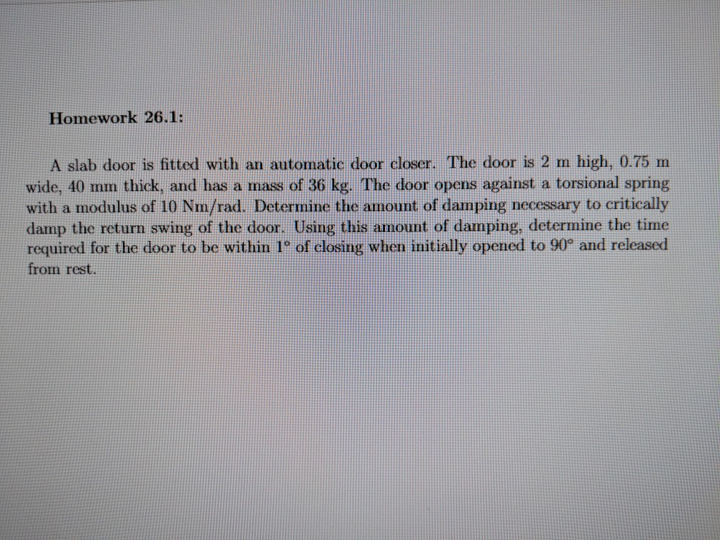 Solved A Slab Door 2m High 0 75m Wide 40mm Thick And