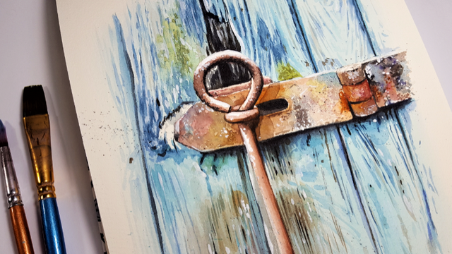 Weathered Old Wooden Door With Locks Watercolor Art Print Etsy
